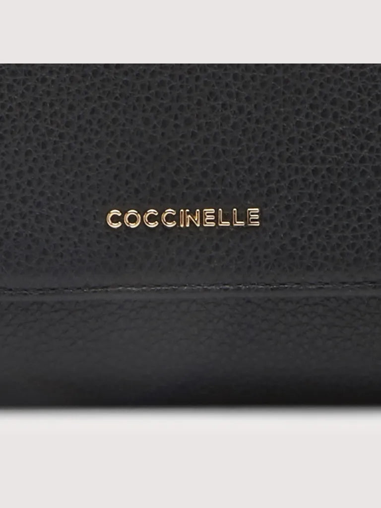 Coccinelle C-Easy is a tote bag featuring sinuous curves that highlight the beauty of the leather. Functionality is expressed by the capacity and the inner pouch, but the core of the design lies in the fastening, which can be done either centrally via a magnet, leaving the sides open, or by folding the sides through the lace and button stud closure. There is no lack of a metallic element in the handle with the new C-Me logo, which brightens up this bag with its extremely versatile soul. This model is made with leather processed using specialised machines and then tumbled to maintain its softness. This is a very robust, easy to clean leather, making it ideal for everyday use.