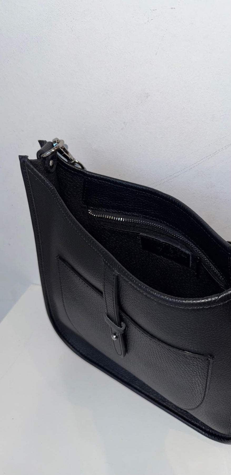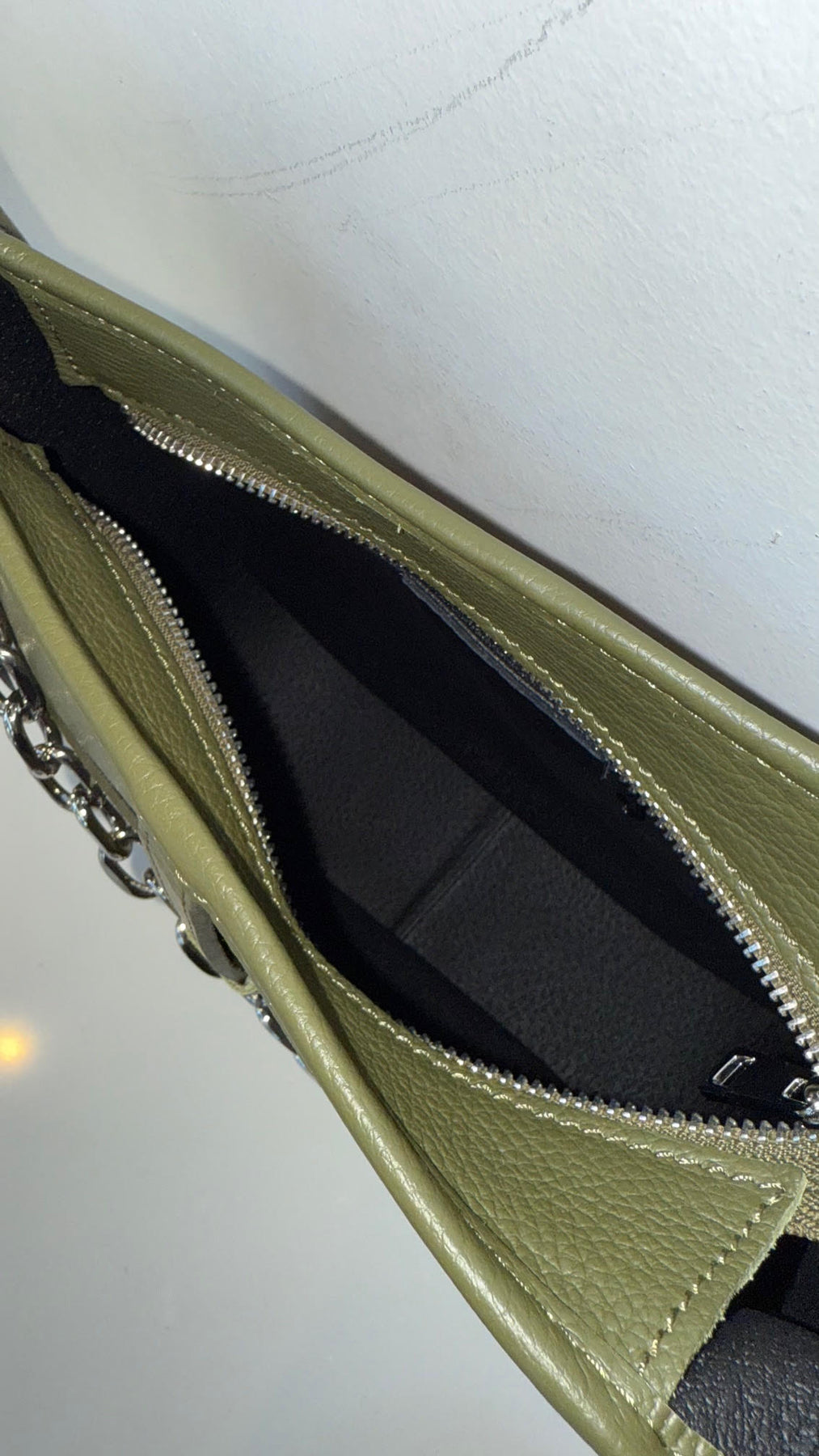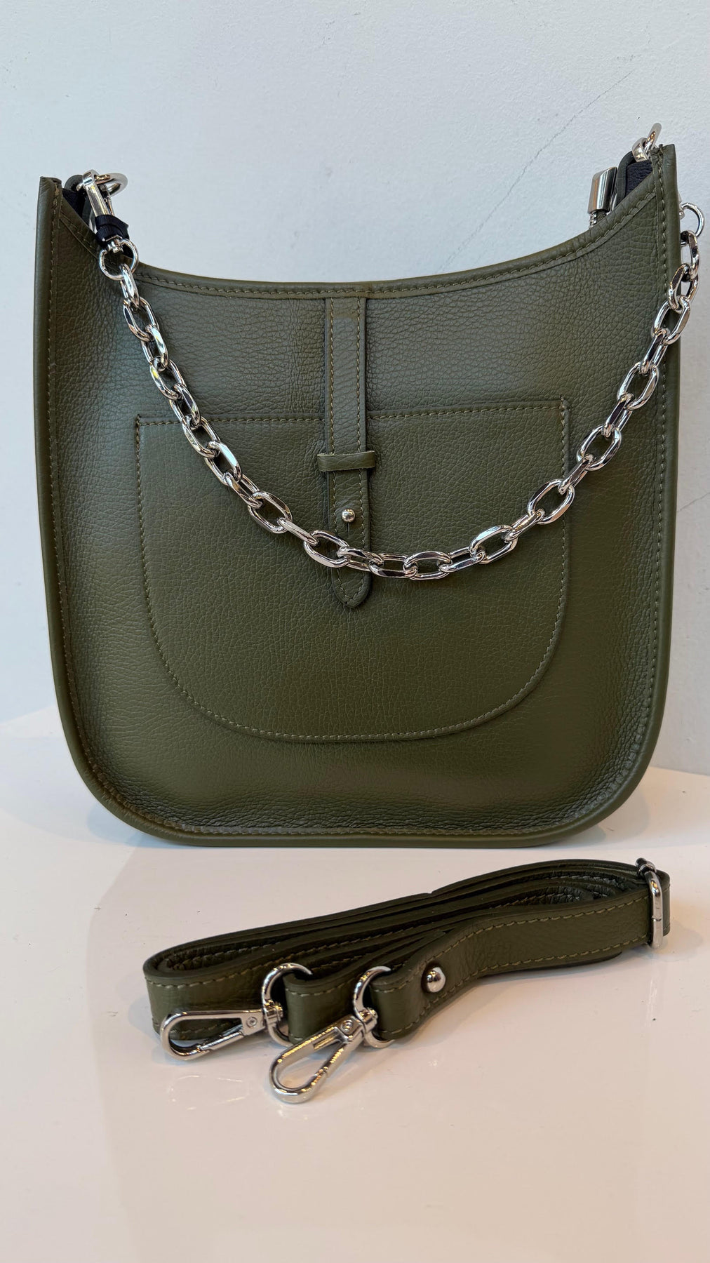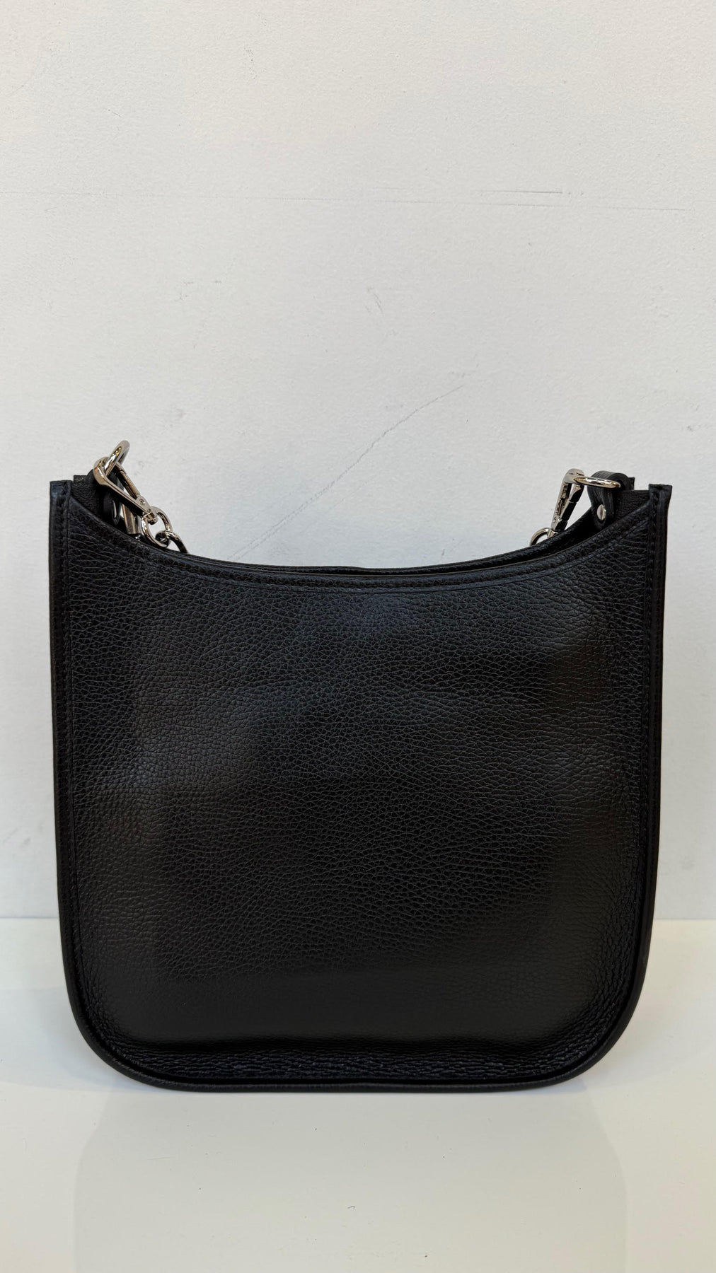 Crafted from high-quality textured leather, this compact yet stylish bag is the perfect companion for both day and evening outings.