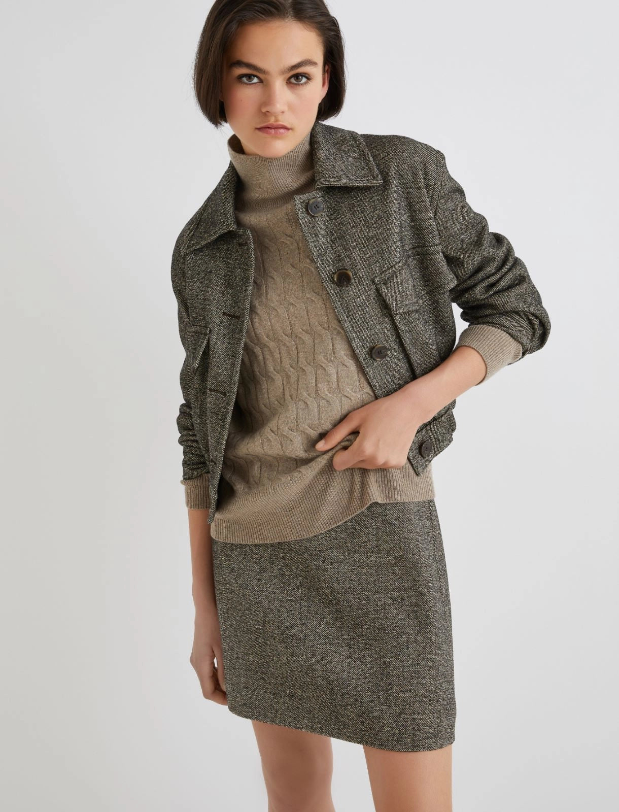 A feminine and chic take on the timelessly charming mock polo-neck sweater. The soft wool and cashmere yarn and cable-knit pattern make the garment a new all-rounder for the cold season.
