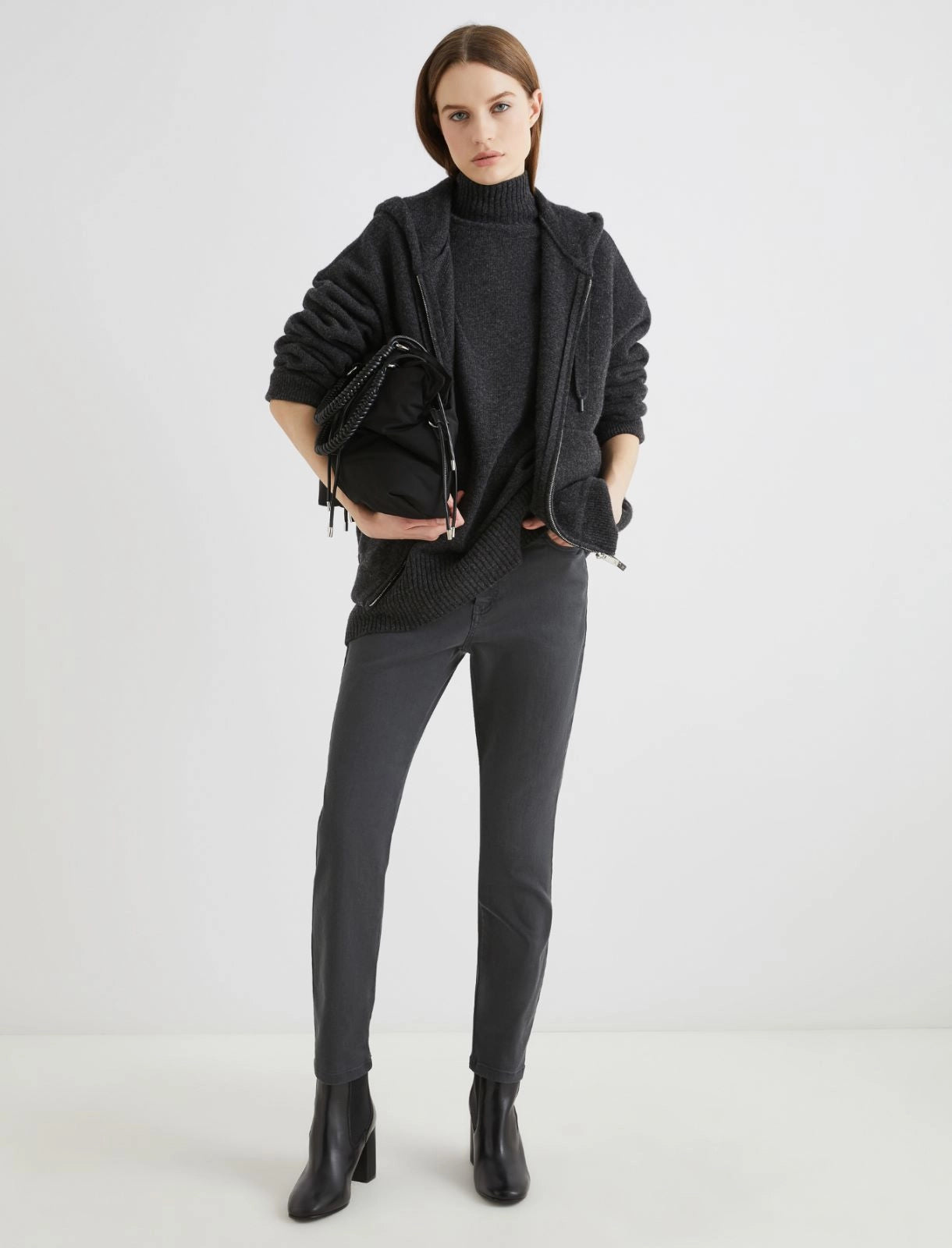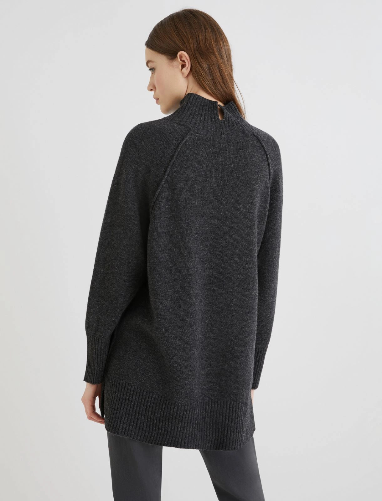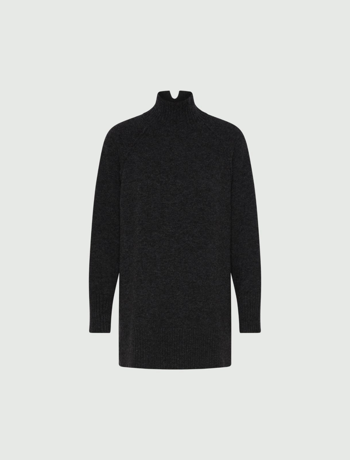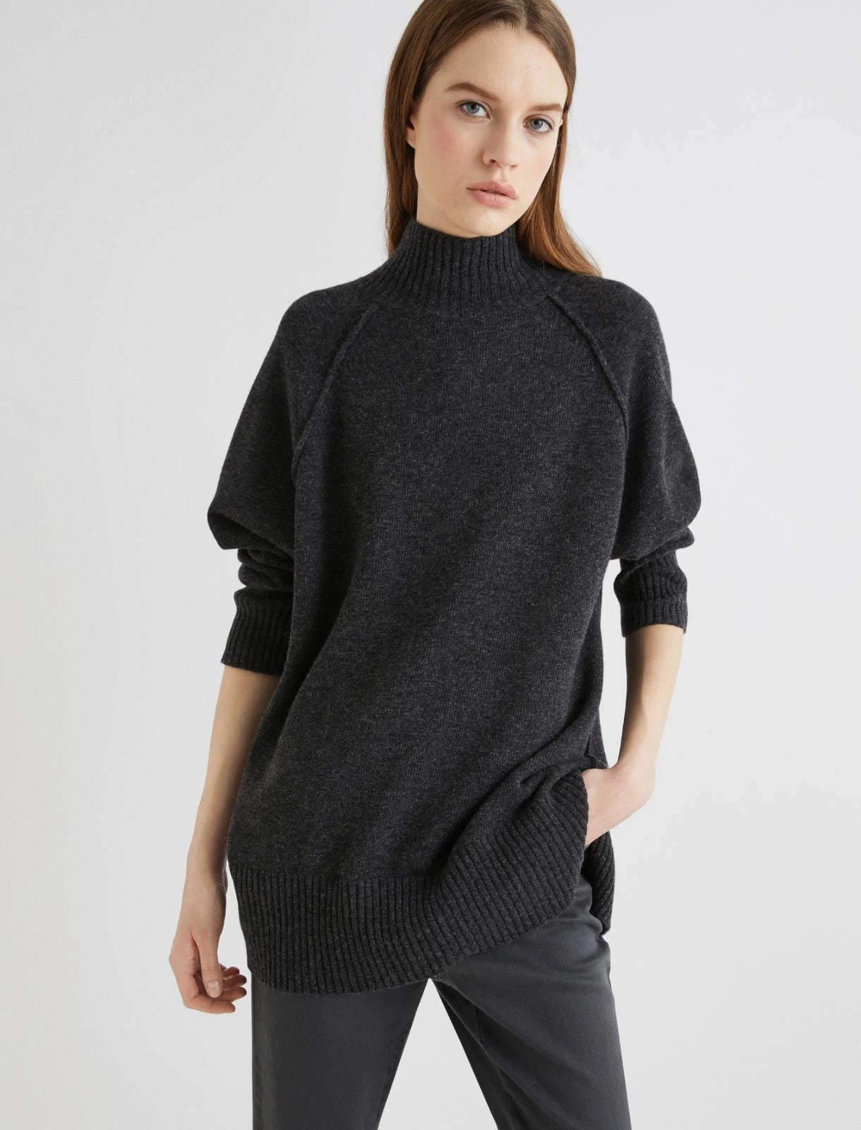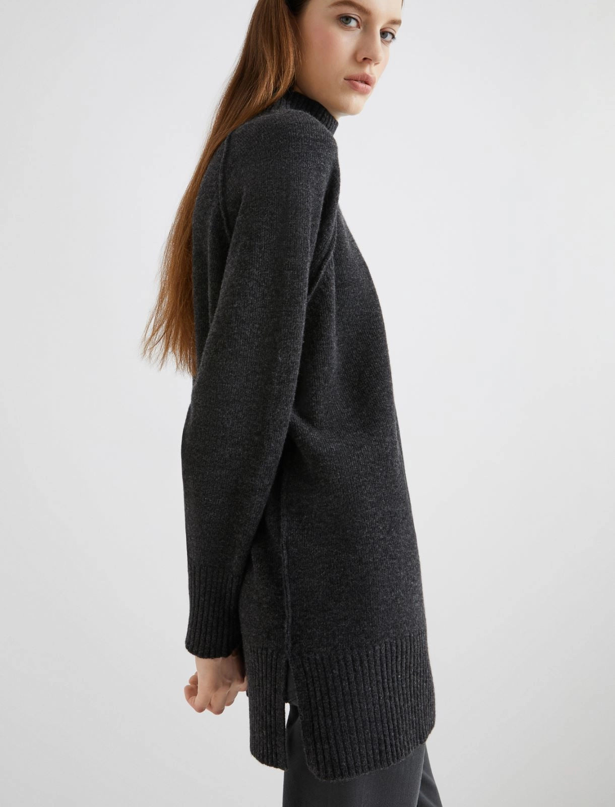 A true wardrobe essential to be worn time and time again: this carded wool high-neck sweater boasts an essential cut and cool side slit detail. Try it with billowing calf-length skirts for an ultra-feminine city look.
