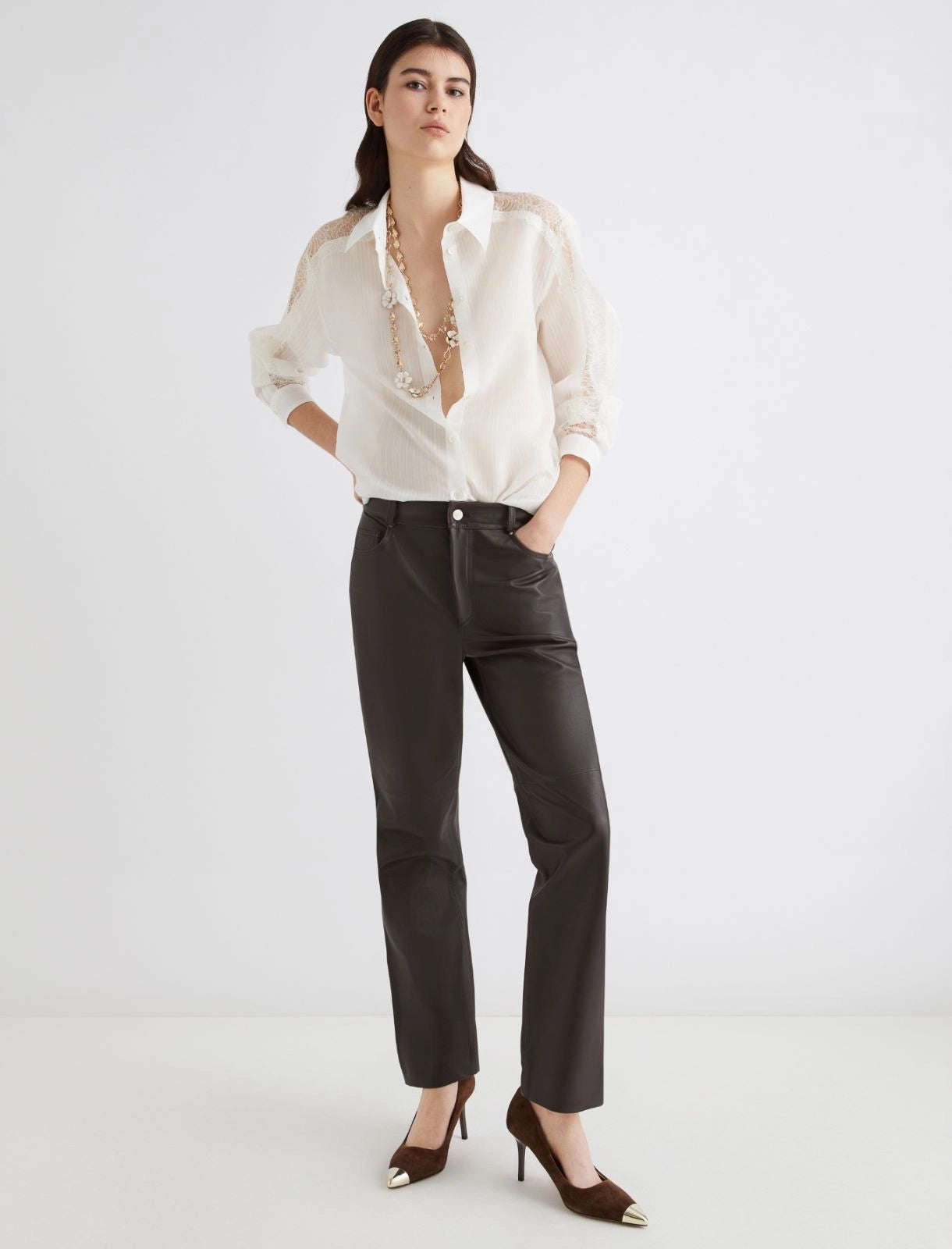 Small luxurious details transform this shirt into a poetic top: the lace inlays on the sleeves create a subtle see-through effect, making the garment perfect for more feminine outfits.