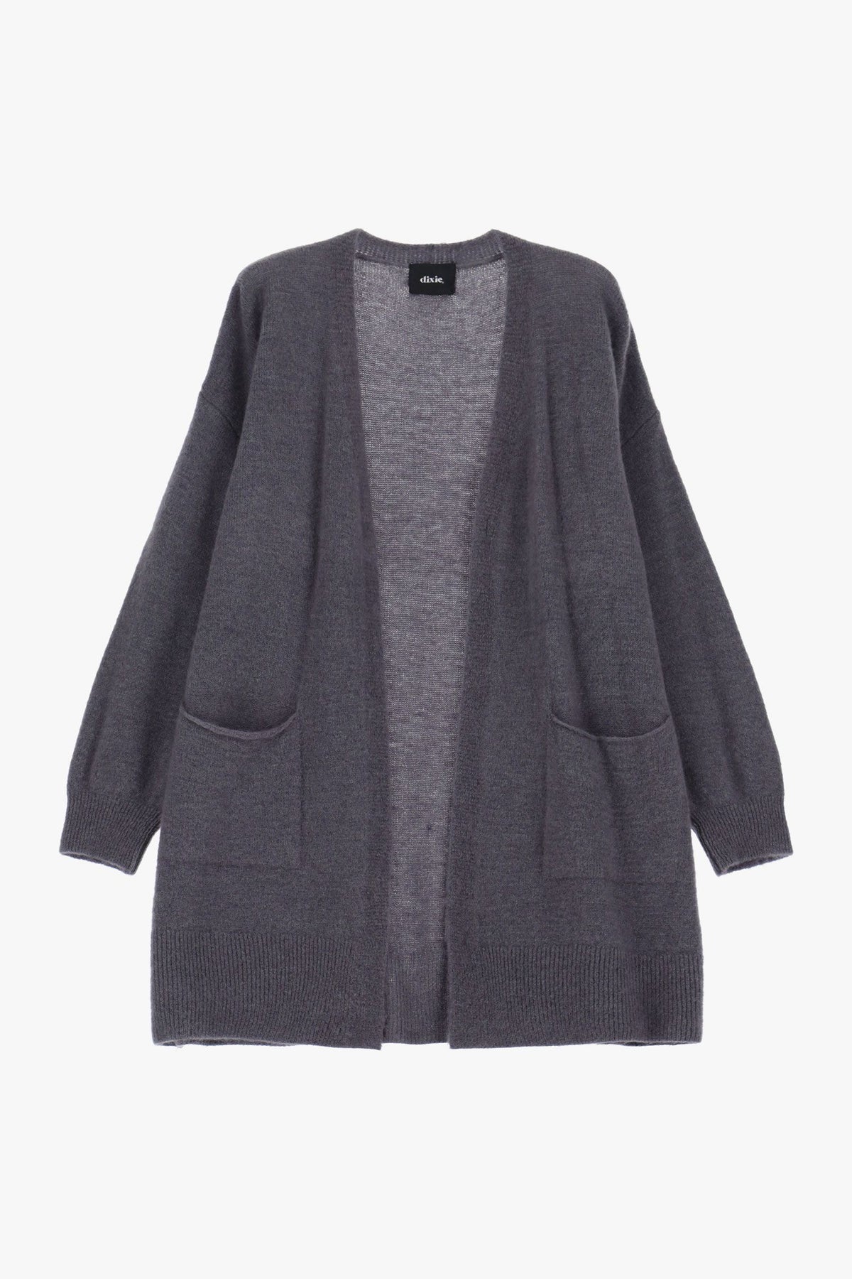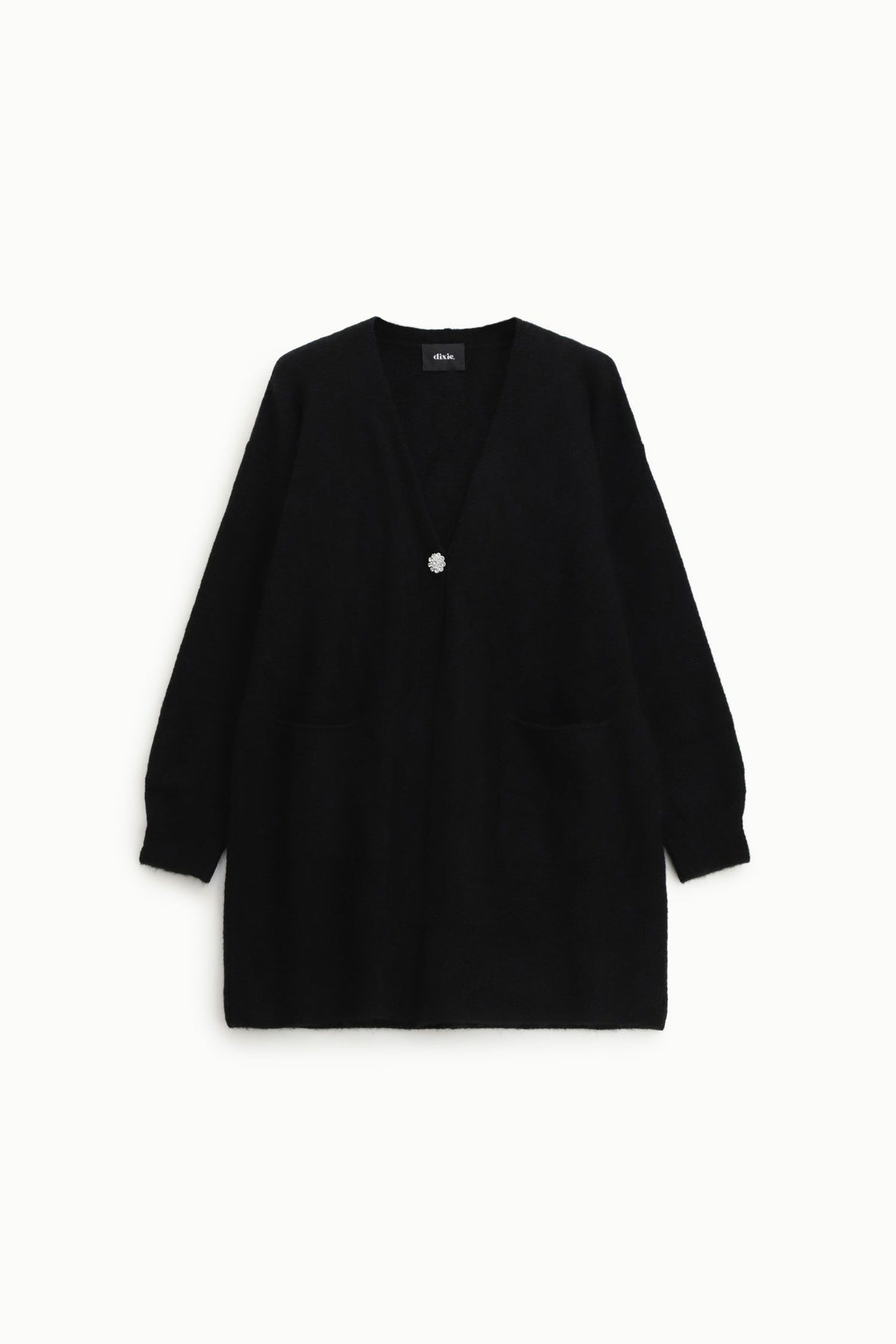 A long, relaxed-fit cardigan that brings a fresh vibe to any day. The jewel button adds a touch of character while the front pockets make it practical for everyday life. Easy to layer over dresses or jeans, it’s the piece you’ll reach for when comfort and a hint of detail matter.