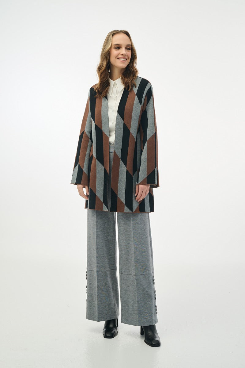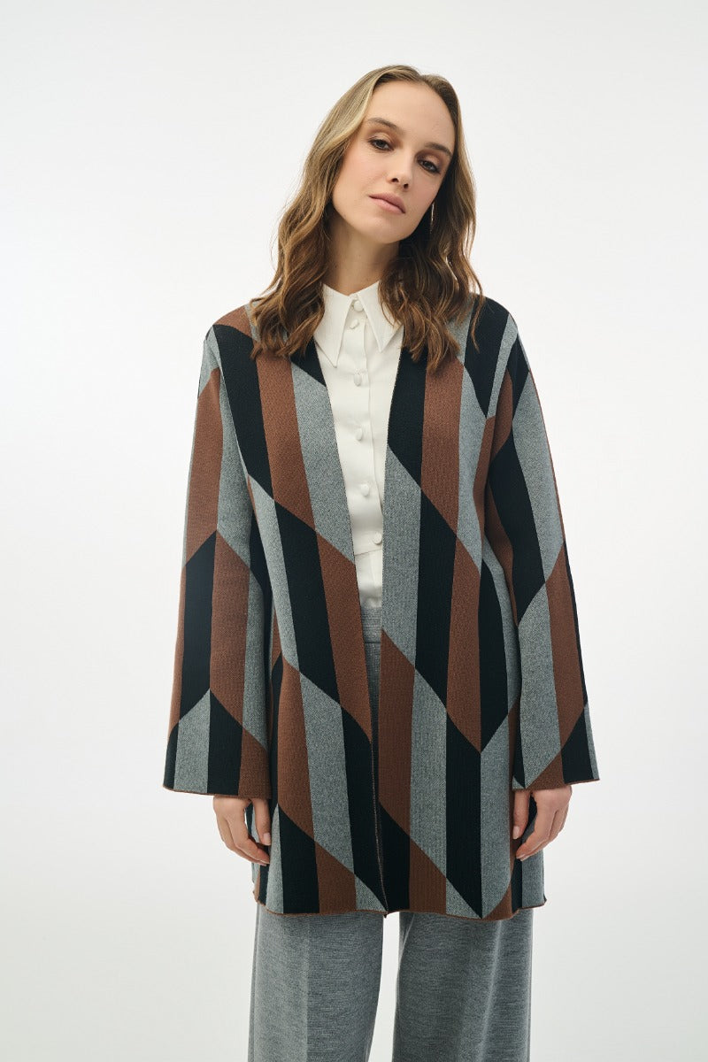 Wrap yourself in this long coat and discover a new level of everyday elegance. The open design and notched lapel offer a relaxed yet sophisticated look. Perfect for a city stroll or a more formal occasion, this piece will become your new style ally.