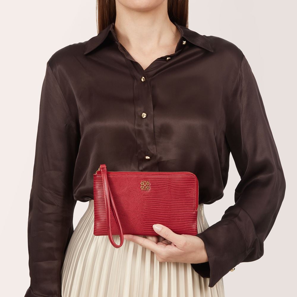 Clutch bag in Joy synthetic material. Secure zipper closure. Easy, compact and practical, can be carried as a pochette or used as a necessaire inside a larger bag.