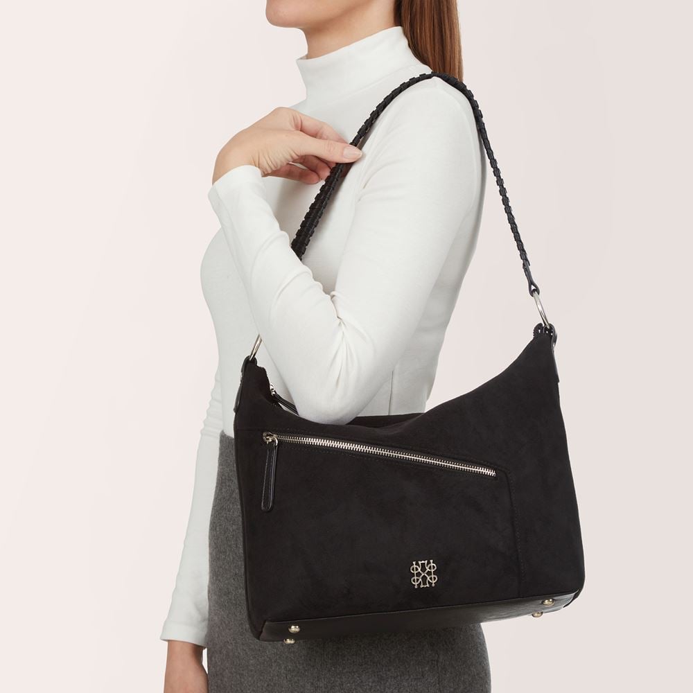 Shoulder bag in Velour synthetic material. Secure zipper closure. Spacious interior with 2 pockets for keeping your items well organized. The perfect everyday bag!