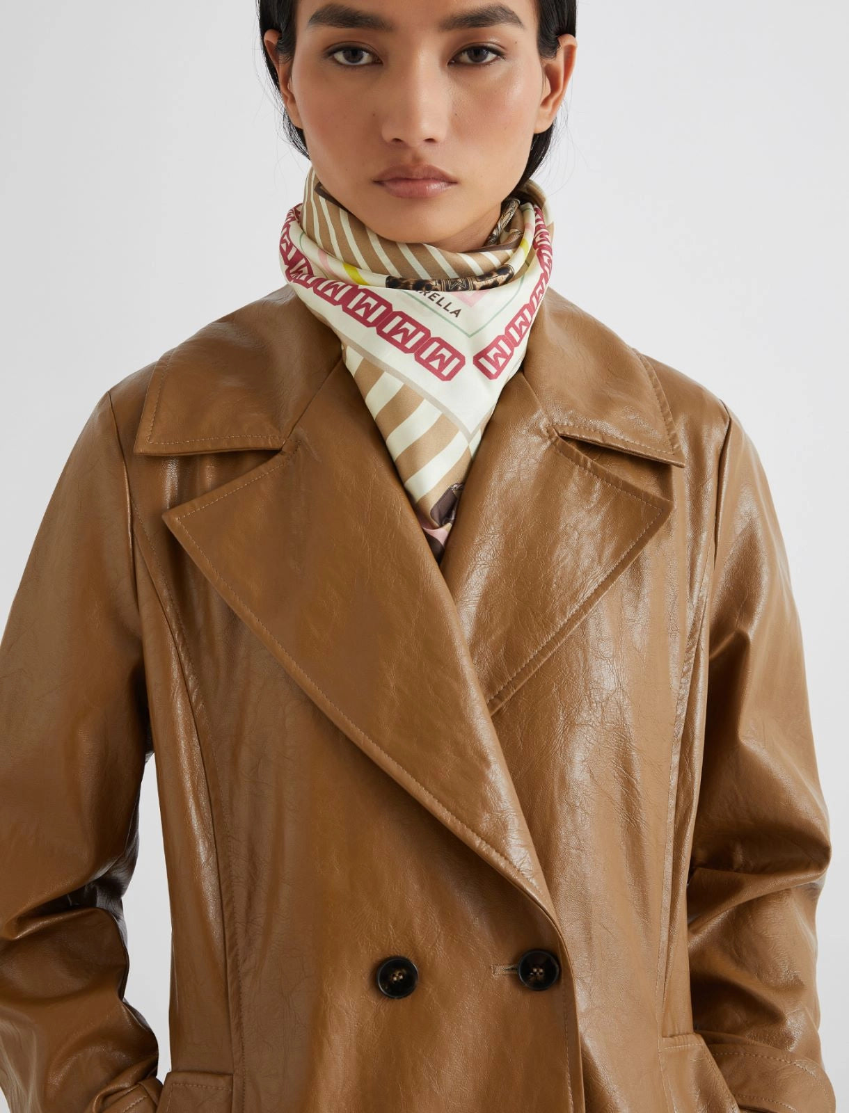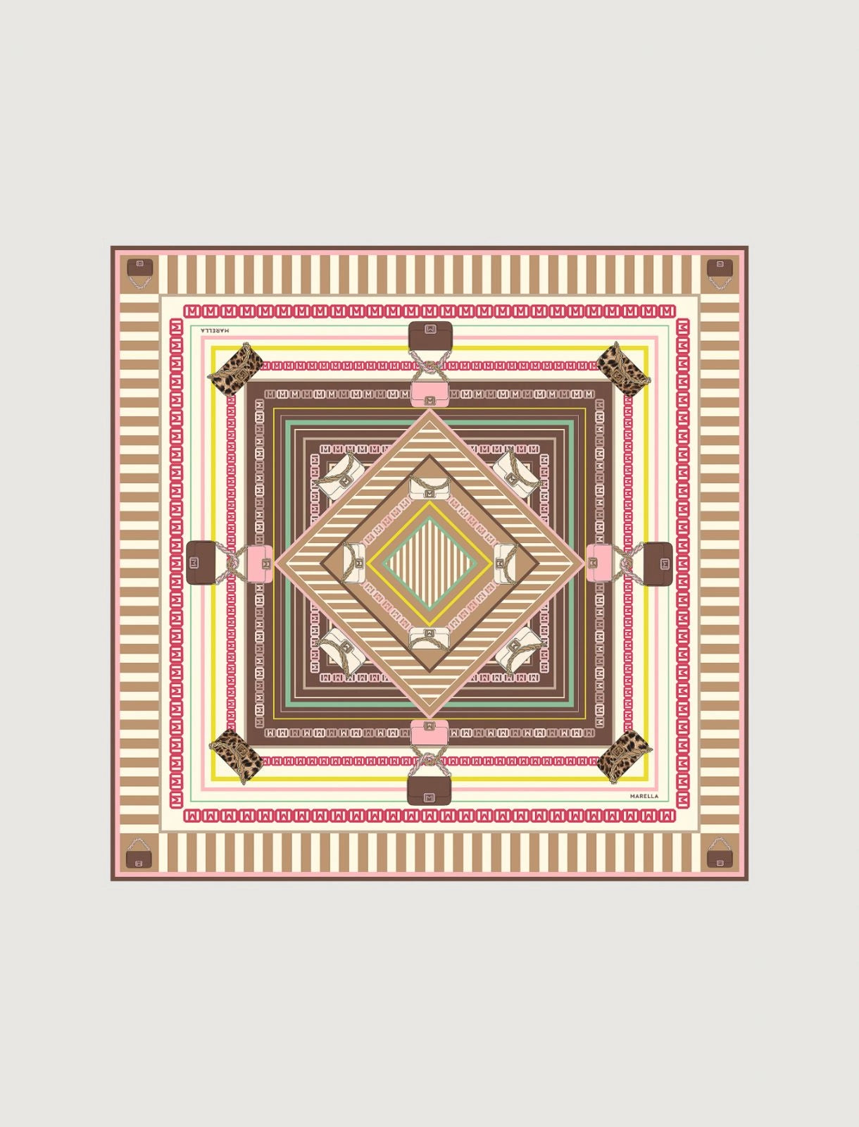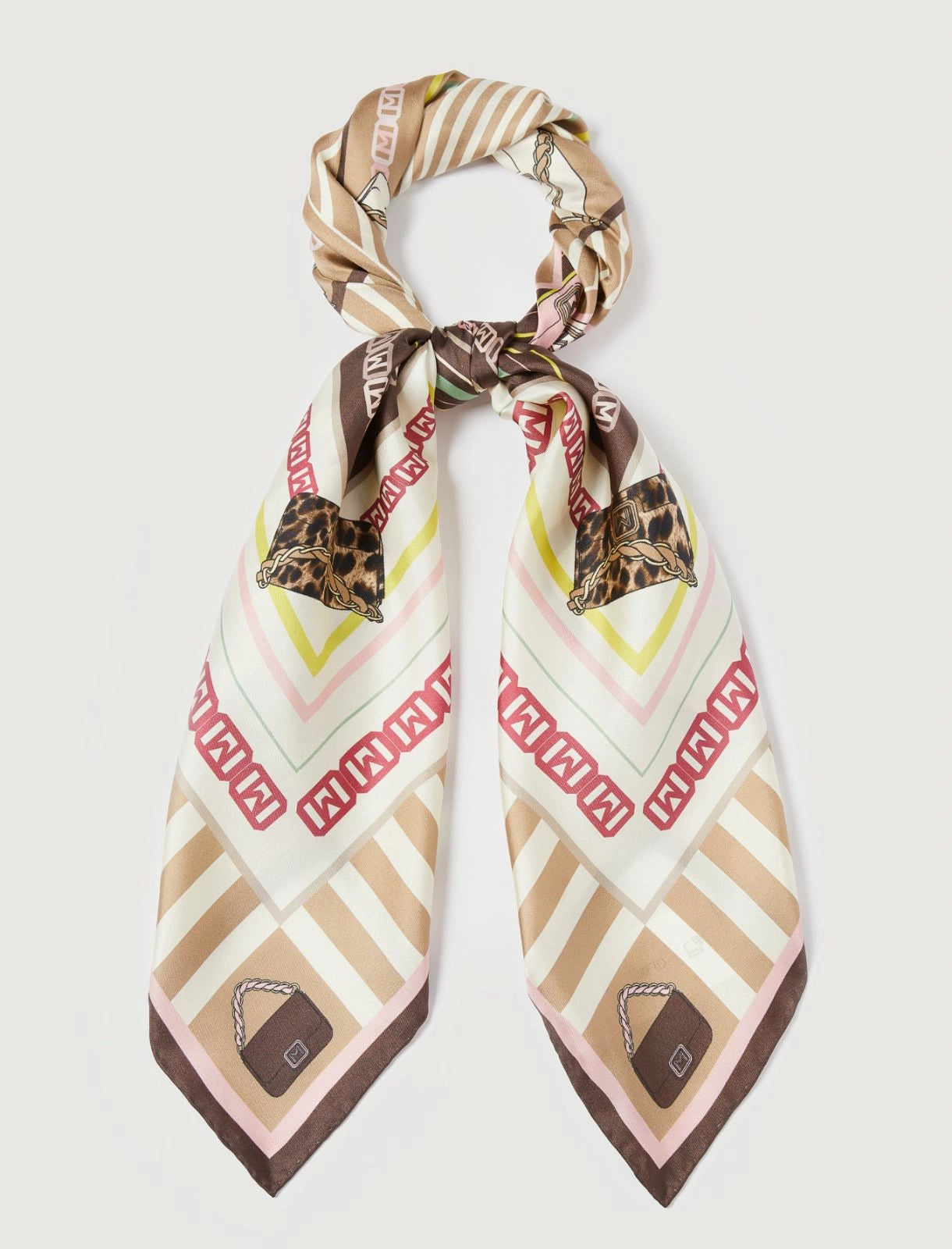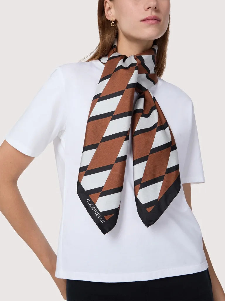 The pattern of the Coccinelle New Geometric Patch stole features colourful elements inspired by ceramic textures typical of Nordic countries, creating a playful colour-block effect.