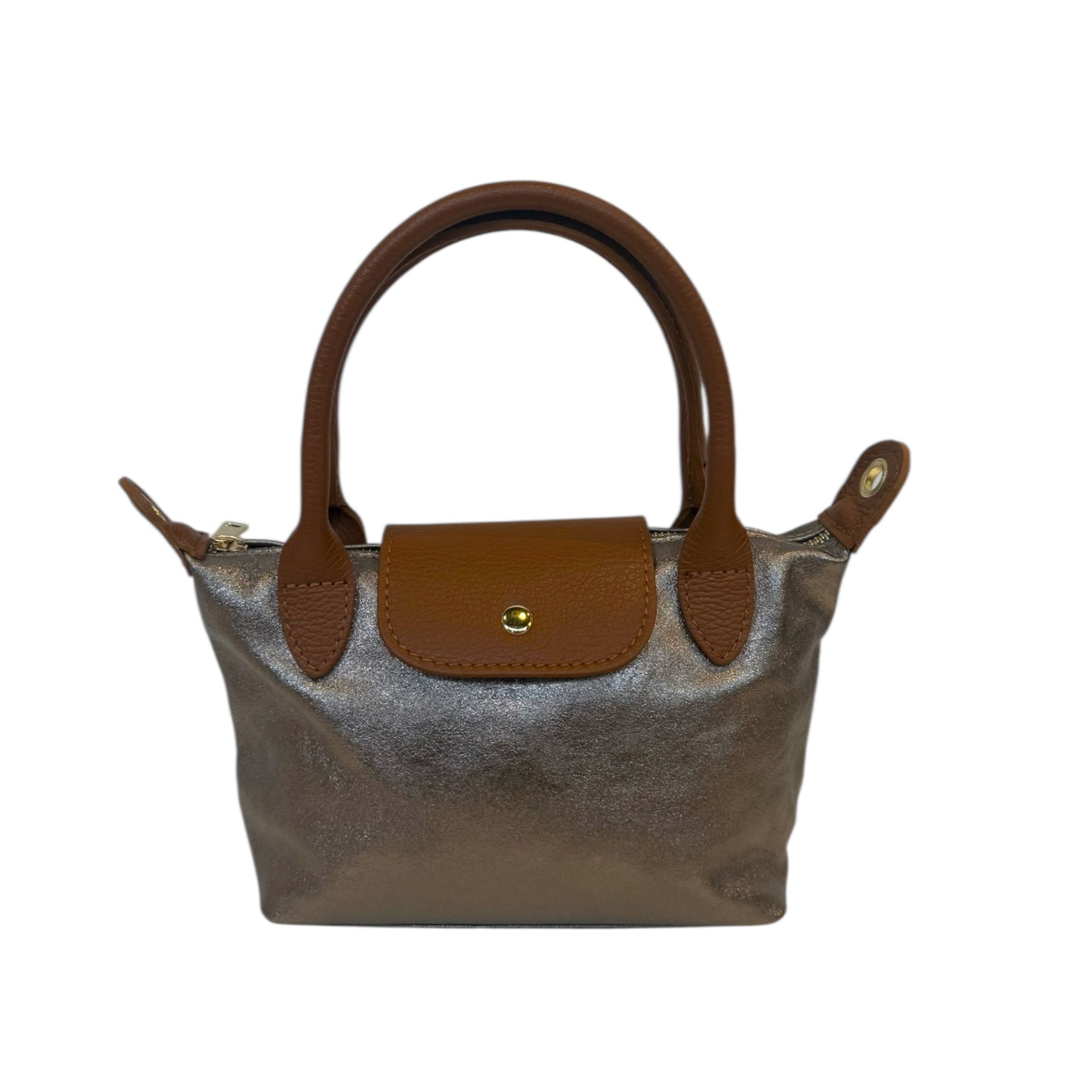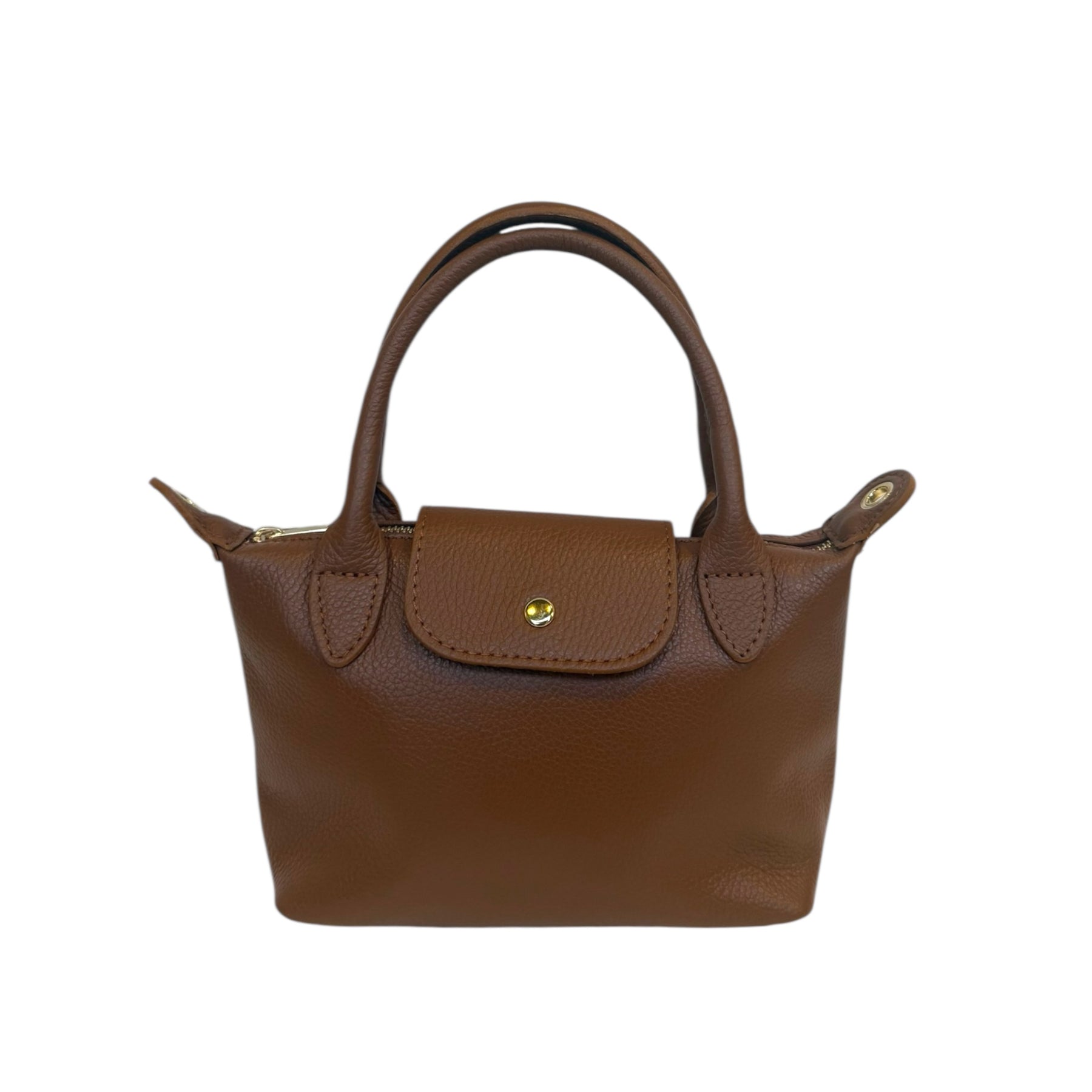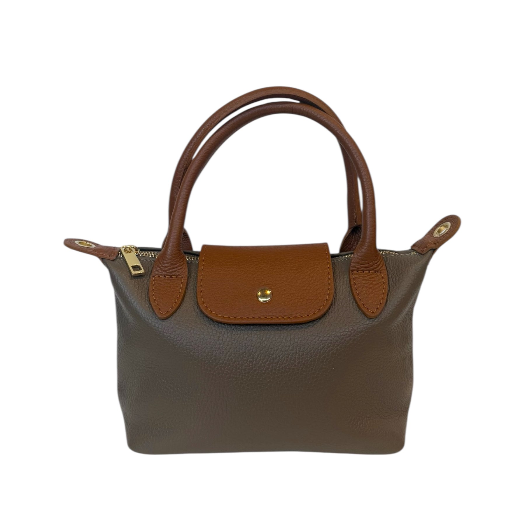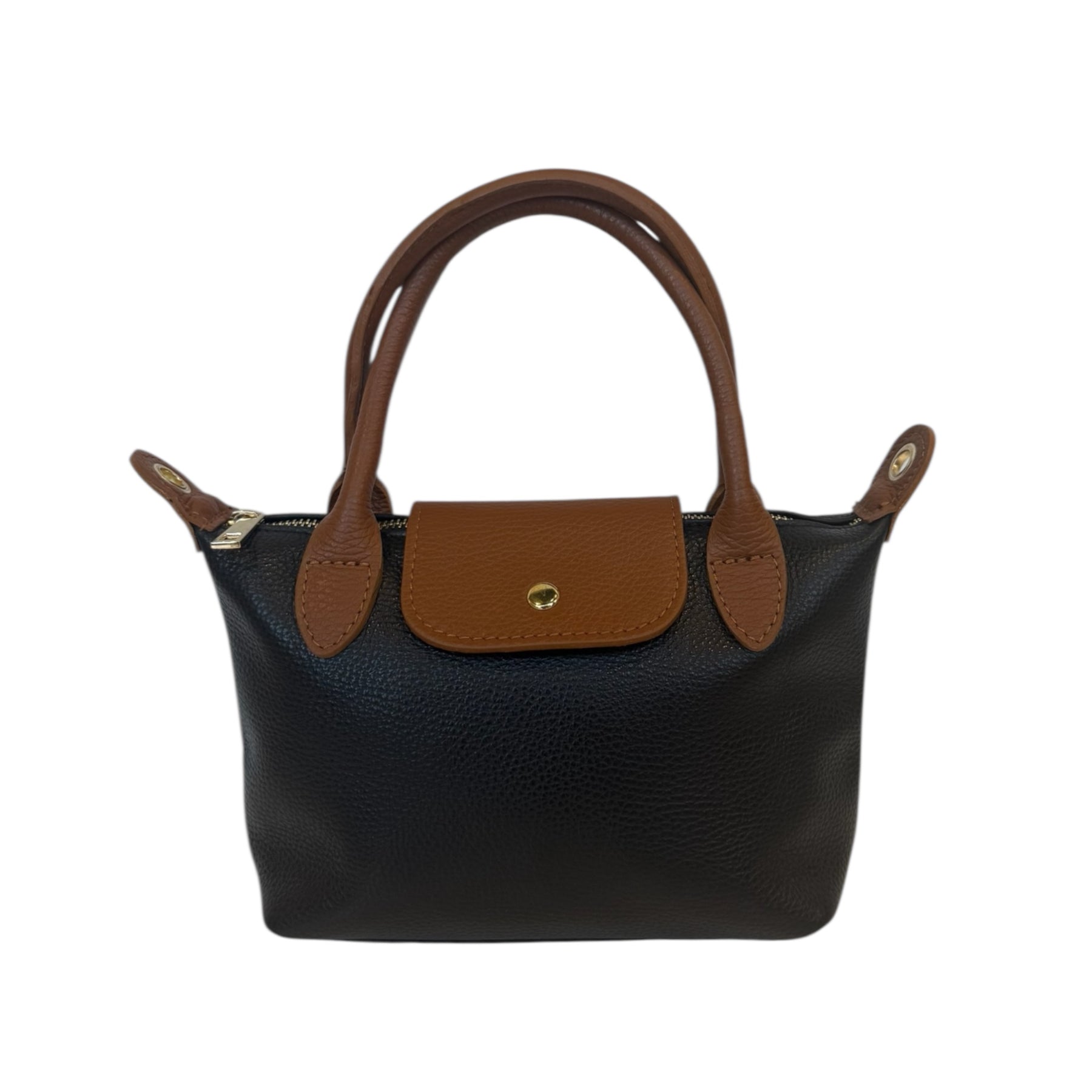 Chic and compact, the Elegance Mini Two-Tone Leather Handbag brings classic charm to your everyday look. Featuring a sleek black body with contrasting brown handles and flap, it’s perfect for carrying your essentials in style.