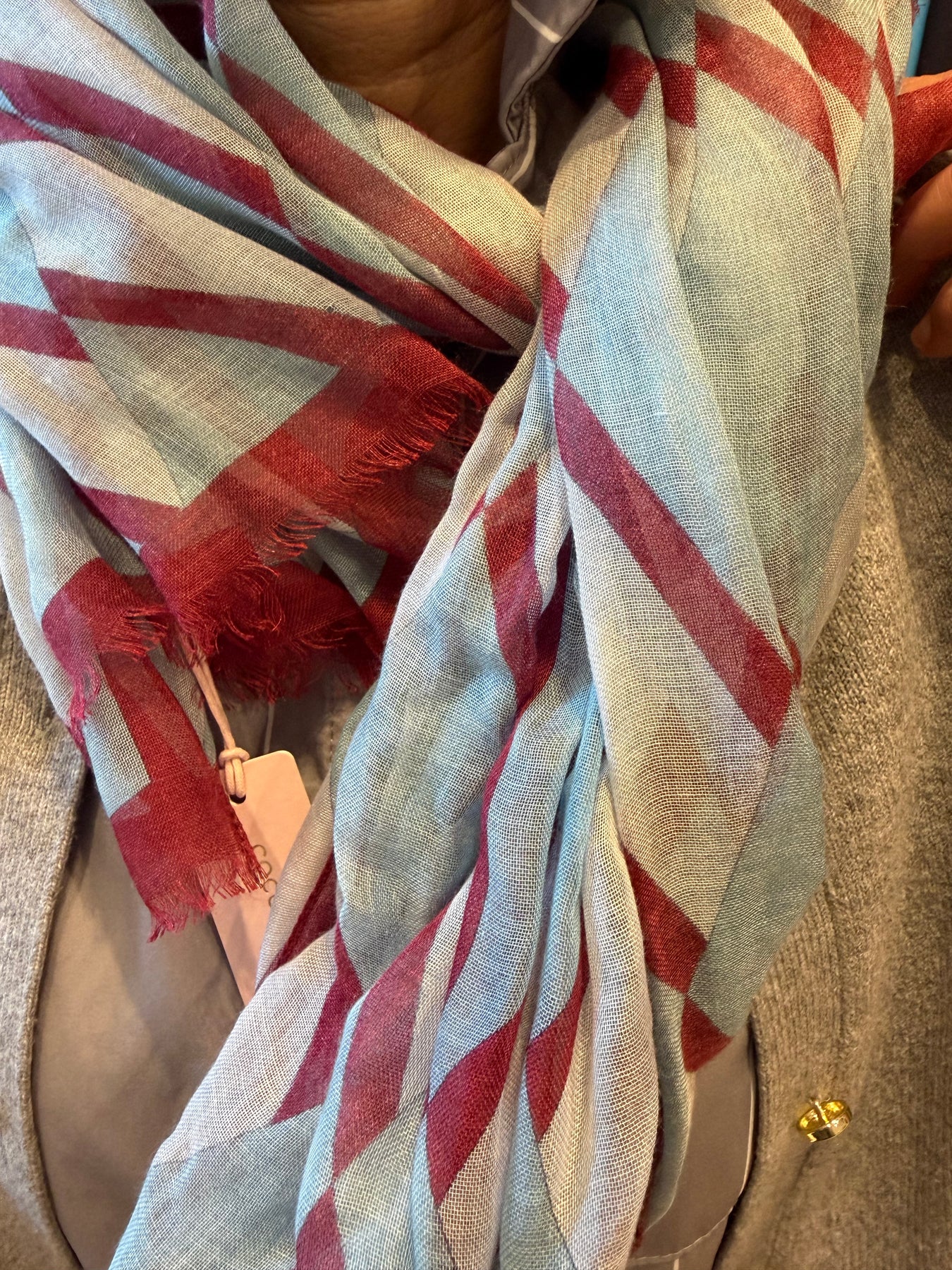 The pattern of the Coccinelle New Geometric Patch stole features colourful elements inspired by ceramic textures typical of Nordic countries, creating a playful colour-block effect.